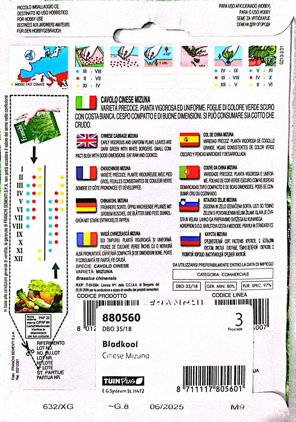 Fr Leaf Cabbage, Cavolo Cinese Mizuna 35/18 Approx. Seeds 8gm