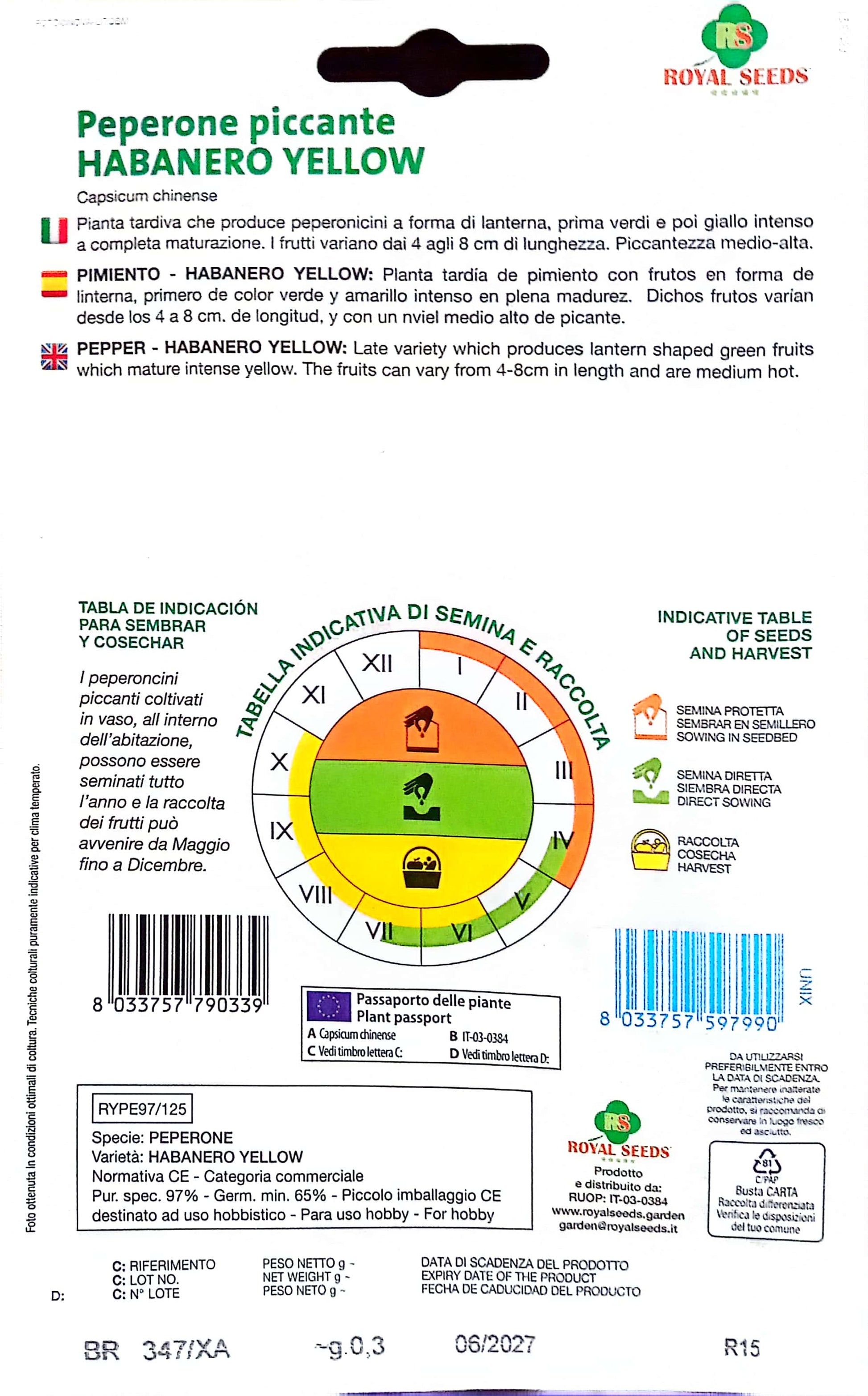 Royal Seeds Peperone Piccante Habanero Yellow Pepper 50 Approx. Seeds